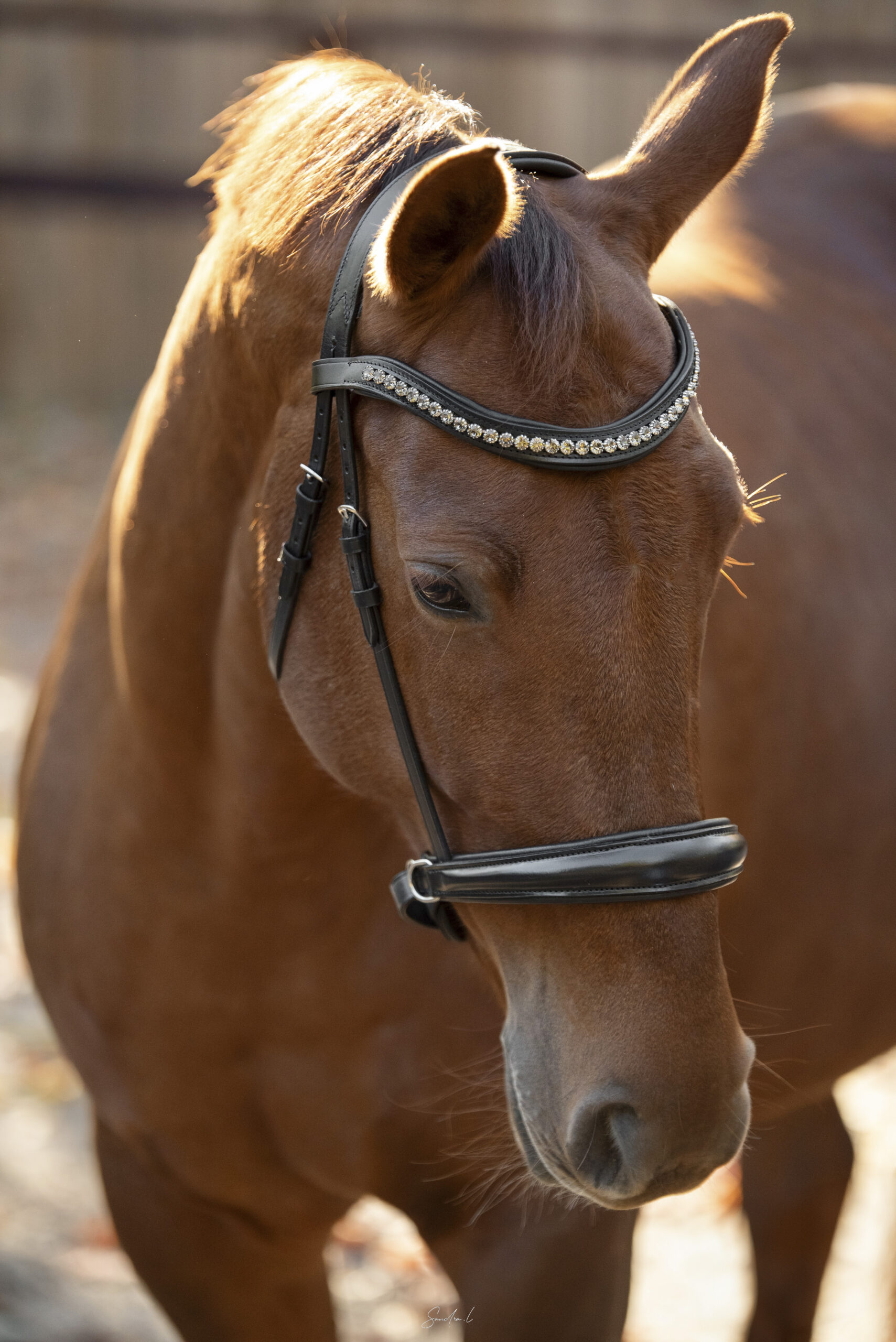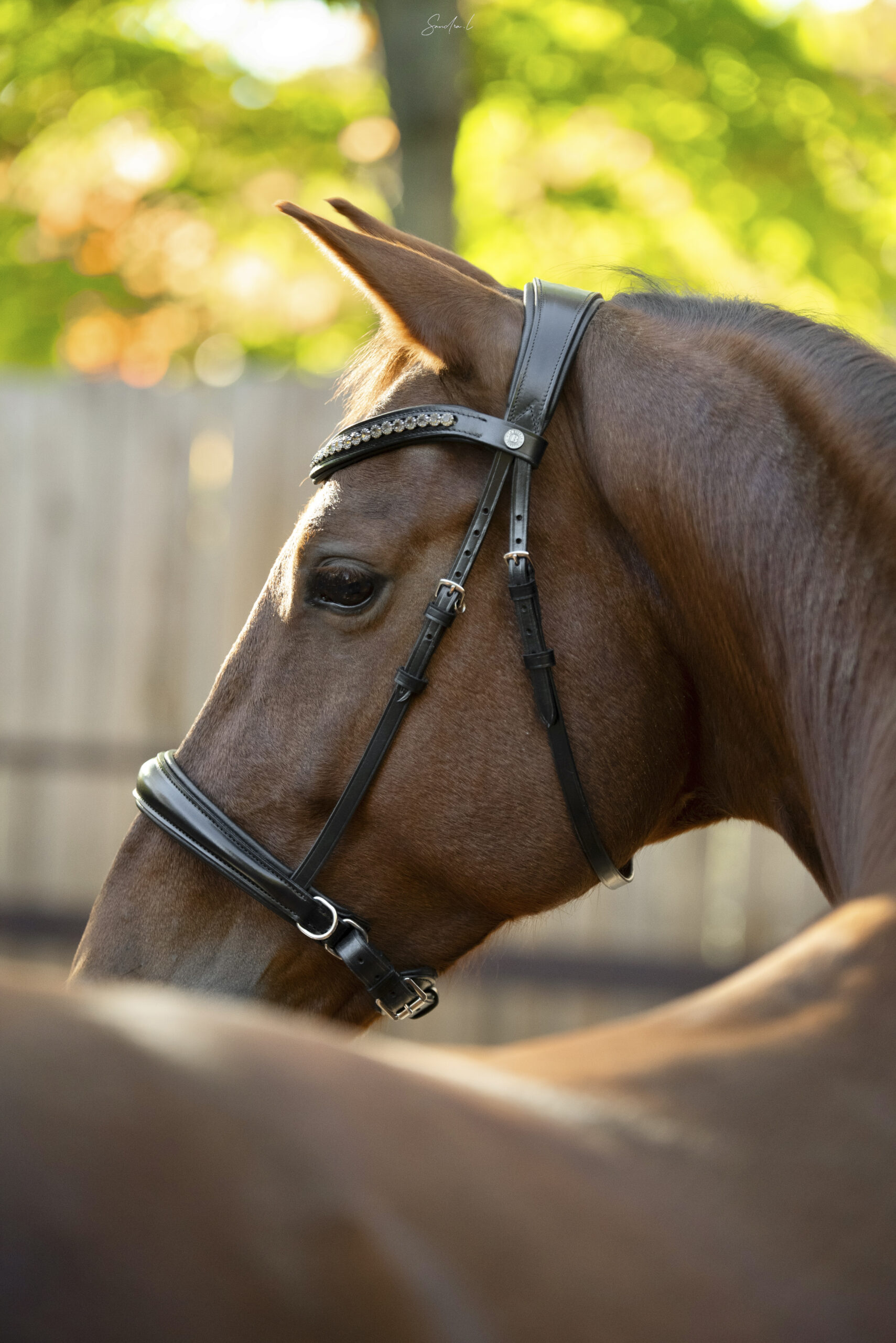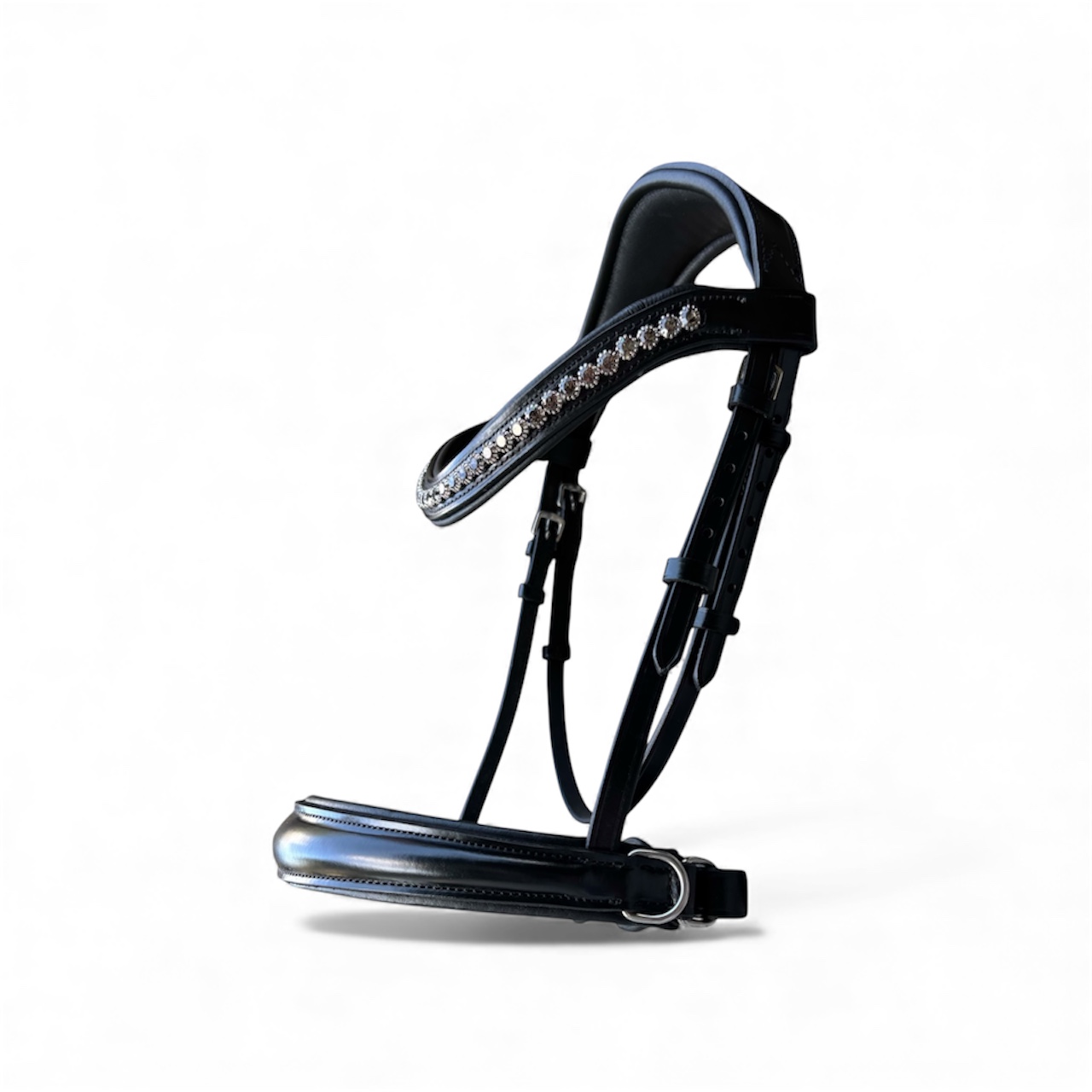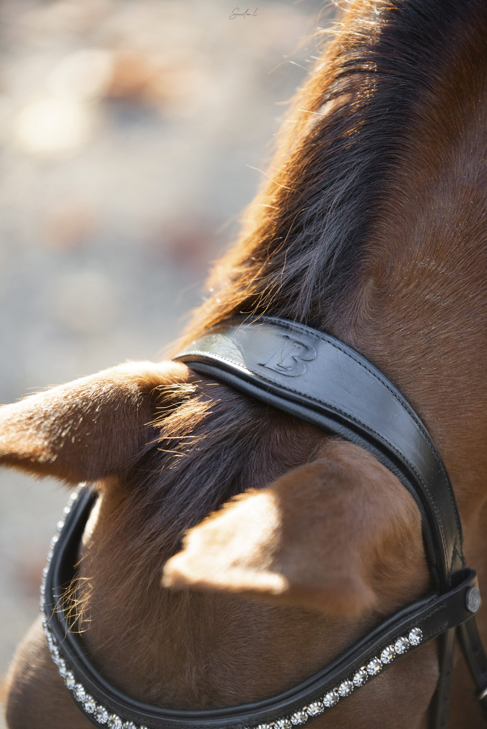 Les lanières sont plates et larges, offrant un aspect classique, robuste et souvent plus stable. Idéal pour un usage quotidien ou pour des chevaux nécessitant un maintien plus large.